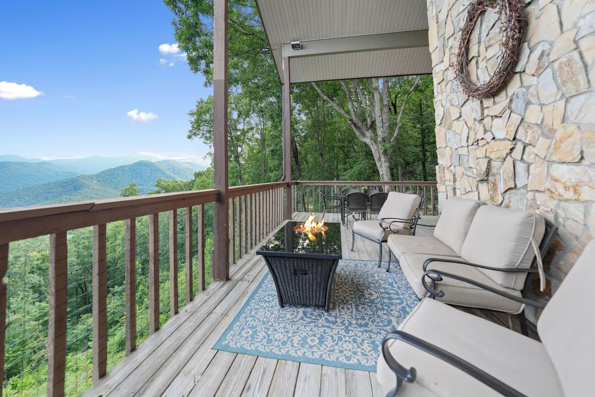 Three tiers of wrap-around porches offering expansive views of the mountains, no matter the weather.